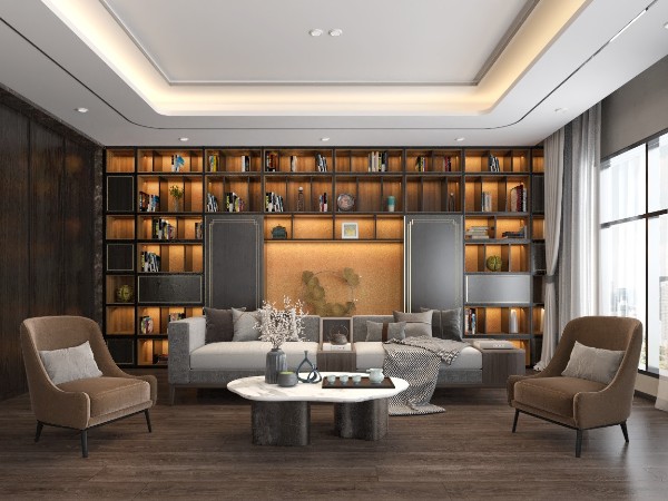 整體復古式裝修風格并不會過分強調華麗,更多的是用木質家具展現低調沉穩(wěn)的傳統(tǒng)氣韻,材質也比較厚實耐用,使用壽命較長,襯托出檔案室自身屬性的歷史感。溫馨的暖色調,無主燈設計的柔和光線,數量龐大的藏書整齊陳列,讓人不自覺地沉浸在古典寧靜的祥和氛圍中。