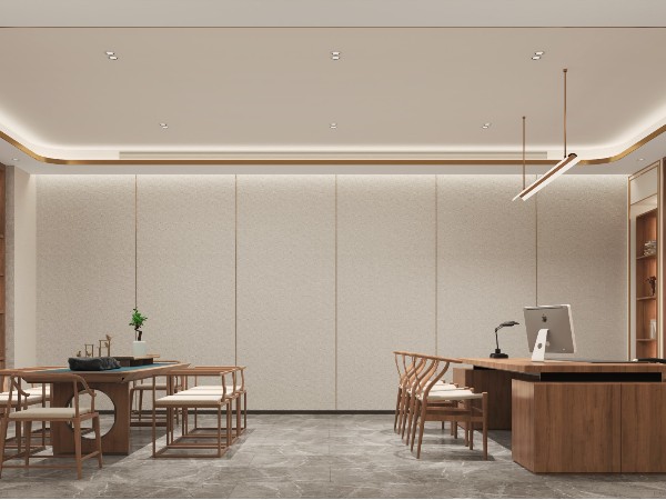 新中式裝修設計風格不僅能彰顯出董事長獨特的個人品味,還能夠給外來貴客留下深刻印象。在寬大的室內面積中,擺放著稍矮的明式家具,視覺空間會更開闊,給人一種恢弘大氣而又安靜獨立的辦公空間,保障高層日常工作的隱私性。