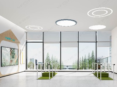 專業(yè)的深圳裝修公司會在辦公室裝修事項中,注重顏色搭配的和諧性。兒科診室的整體環(huán)境既需要沉穩(wěn)肅靜的基本調性,同時也需要有一個靈動活力的氛圍感,防止小孩子陷入壓抑枯燥的就診狀態(tài)。因此在室內裝修的整體色彩把控上至關重要,明亮的黃色點綴不僅能夠給兒童心情上的舒適,配合天花頂層幾何圖形狀的裝飾燈帶,從而增強室內的采光度,又起到極強的藝術觀賞性。