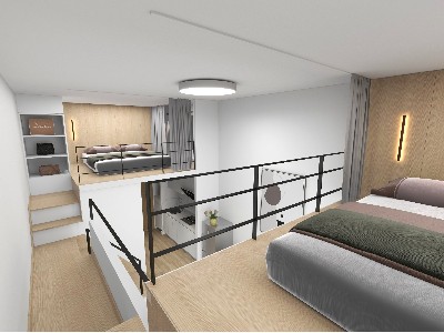 隱私簾保證了休息空間的隱私性,靜謐而溫馨的暖黃光源,觸感柔軟的床上用品,極簡的裝飾元素暗示著空間功能專屬于睡眠,在此刻,疲倦的精神壓力更易得以釋放。