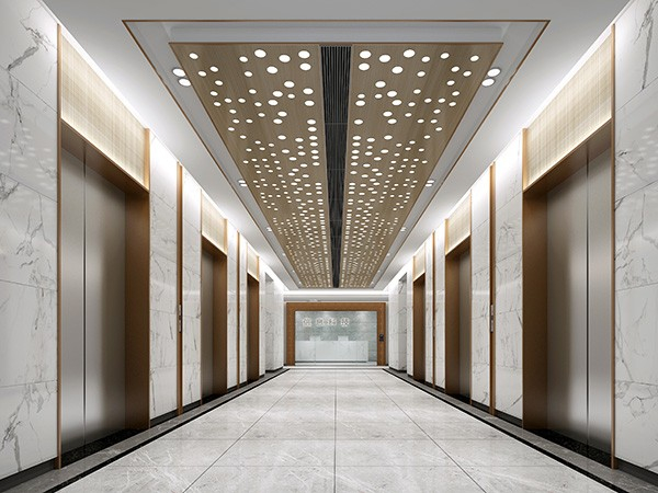 電梯廳采用鎏金色鑲邊與爵士白大理石相搭配,點(diǎn)綴星星點(diǎn)點(diǎn)的圓形燈光,仿若銀河星系落到了凡間,相當(dāng)漂亮,給人一種高級(jí)、大氣、奢華之感。走道采用大膽的設(shè)計(jì)。不算平整的吊頂和長(zhǎng)條形的燈光,讓短短的走道延伸出無(wú)限的空間感,淡金色的墻壁則體現(xiàn)一種高貴感。細(xì)看之下,吊頂邊緣還暗藏“玄機(jī)”,淡淡的暖黃色燈光更增添了神秘感。
