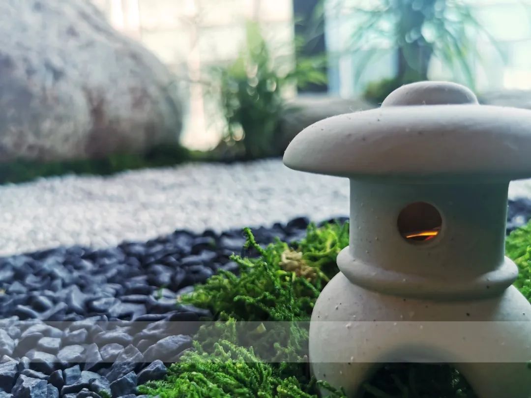 室內(nèi)造景結(jié)合植物、石、沙、燈光等簡單的自然元素,創(chuàng)建一隅靜謐的空間;欣賞一處景色,忘卻一絲煩憂。