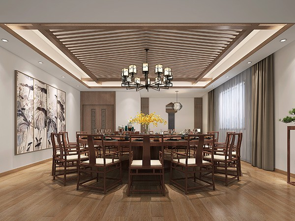 餐廳內(nèi)復(fù)古木質(zhì)桌椅環(huán)繞而立,古典的木作與時(shí)尚的裝飾相結(jié)合,掛畫墨香別具一格,別致的屏風(fēng)和燈籠造型的吊燈更是頗具古韻,整體設(shè)計(jì)典雅簡(jiǎn)約,有一股幽深雅致之意,靜謐深遠(yuǎn)的意境也隨之而來。一杯清茶,靜聽一曲純音,在寂靜的時(shí)光中放下自己,畫骨清韻,飲盡冷暖。在這充滿禪意的空間,有無盡的人生回味。