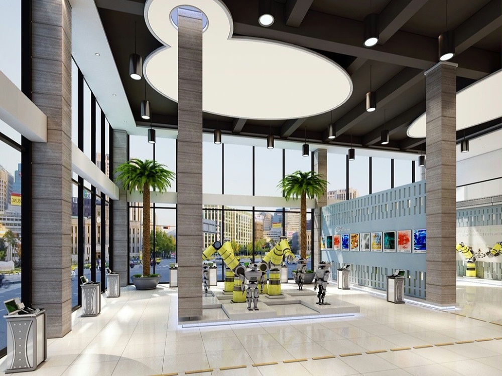 天機(jī)智能是一個(gè)機(jī)器制造企業(yè),他們的機(jī)器人應(yīng)用在工業(yè)中的各個(gè)環(huán)節(jié),作為生產(chǎn)流水線(xiàn)機(jī)器人的公司,天機(jī)特別注重機(jī)器的靈活性和外觀的趣味性,其與設(shè)計(jì)師溝通中提出一樓的展廳不僅要凸顯設(shè)計(jì)美感,還要適當(dāng)?shù)脑黾右恍┯腥さ脑?,讓整個(gè)空間更加生動(dòng),二樓則要更加人性化一些。